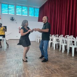 A programação começou com atividades de dança, coordenadas pelo professor Cleyton, que colocou todo mundo para se mexer ao ritmo de diversos estilos musicais, além de Dança de Salão com os oficineiros Antônio e Dulcineia. Os presentes acompanharam Sarau Cultural com a professora psicopedagoga e poetisa, Tania Pimenta.