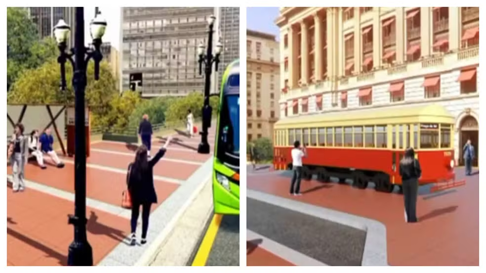 Reforma no Viaduto do Chá prevê mudanças em piso histórico e instalação de um bondinho como central de informações. — Foto: Divulgação