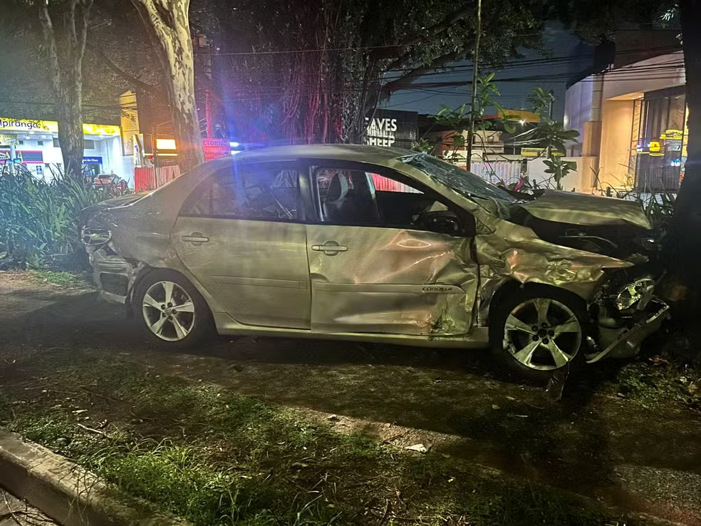 Um carro desrespeitou o farol vermelho e bateu em outro veículo, na madrugada desta quarta-feira (24), no cruzamento da Avenida Engenheiro Luís Carlos Berrini com a Rua Guararapes, no Itaim Bibi, na Zona Oeste de São Paulo.
