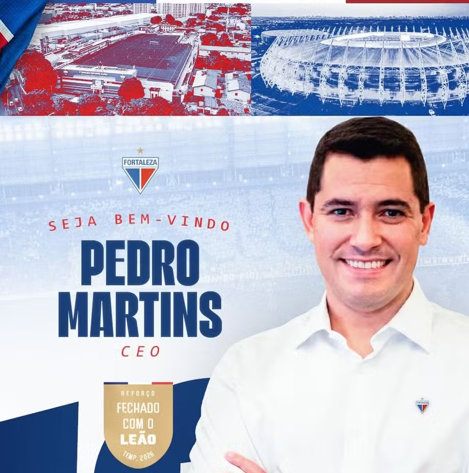 O Fortaleza anunciou o novo CEO de futebol, Pedro Martins, na noite deste domingo (28). Pedro assumiu a função após a saída de Marcelo Paz, depois de 11 anos no Tricolor.