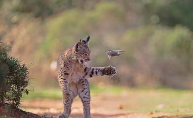 Lince-jovem arremessa um roedor para o alto antes de capturá-lo, em uma área rural da Espanha; o comportamento é comum entre animais jovens. — Foto: Josef Stefan – Wildlife Photographer of the Year – People’s Choice Award 2026