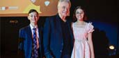 O maestro João Carlos Martins e os estudantes Miguel e Rebeca Paulino