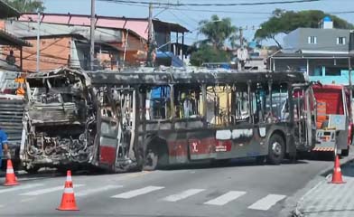 Na noite de terça-feira (17), um grupo de 20 homens encapuzados e armados também incendiou um ônibus na Avenida Guarapiranga, no Jardim São Luís, na Zona Sul de São Paulo.