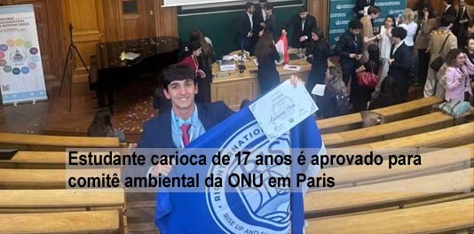 Um estudante carioca de 17 anos foi aprovado para participar do comitê do Programa das Nações Unidas para o Meio Ambiente (UNEP) em uma simulação acadêmica da ONU realizada na Sorbonne Université, em Paris, na França.