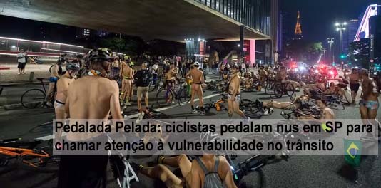 Pedalada Pelada: ciclistas pedalam nus em SP para chamar atenção à vulnerabilidade no trânsito