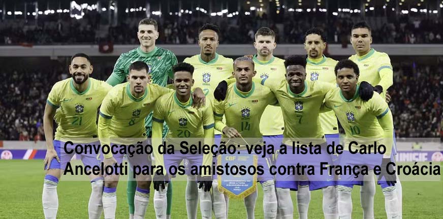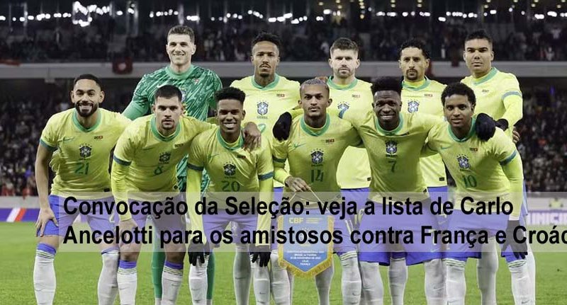 O técnico Carlo Ancelotti anunciou nesta segunda-feira a relação de jogadores convocados para os amistosos contra França e Croácia, marcados para os dias 26 e 31 de março. O treinador deixou Neymar fora, mas chamou Leo Pereira, Gabriel Sara, Igor Thiago e Rayan. Endrick retorna, e Ibañez e Danilo voltam a ser lembrados na última convocação antes da definição para a Copa. Essa é a última convocação da seleção brasileira antes da lista final para a Copa do Mundo de 2026.