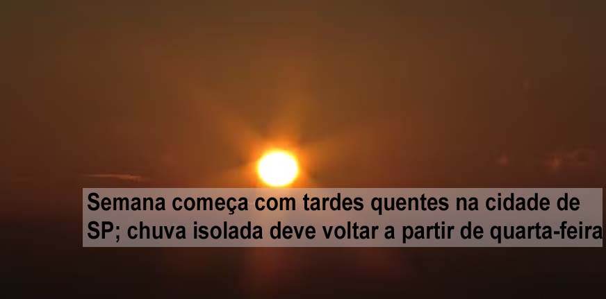 Semana começa com tardes quentes na cidade de SP; chuva isolada deve voltar a partir de quarta-feira