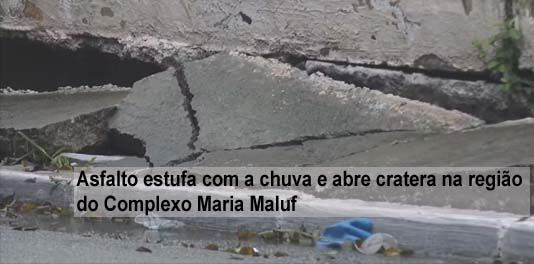 Asfalto estufa com a chuva no Complexo Maria Maluf e abre cratera