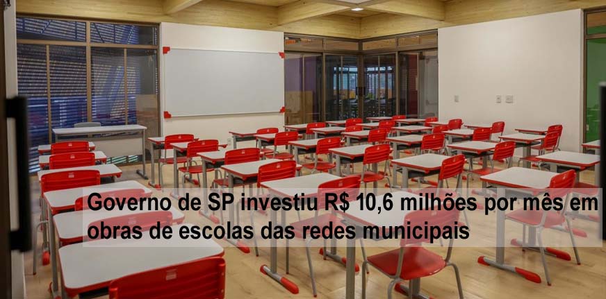 Governo de SP investiu R$ 10,6 milhões por mês em obras de escolas das redes municipais